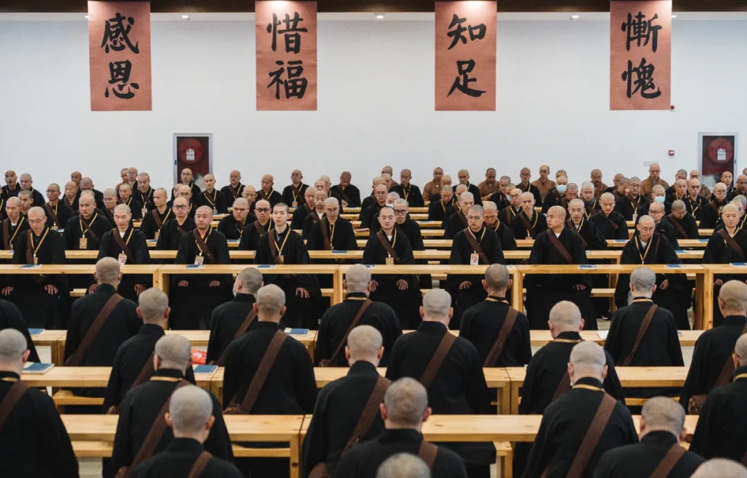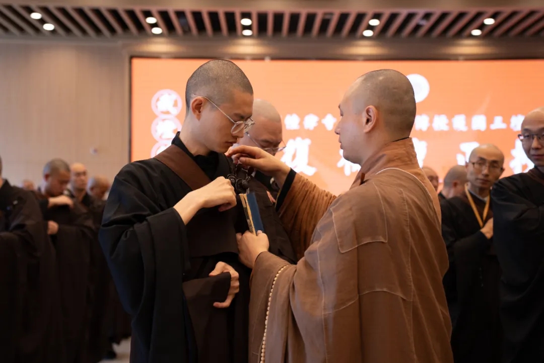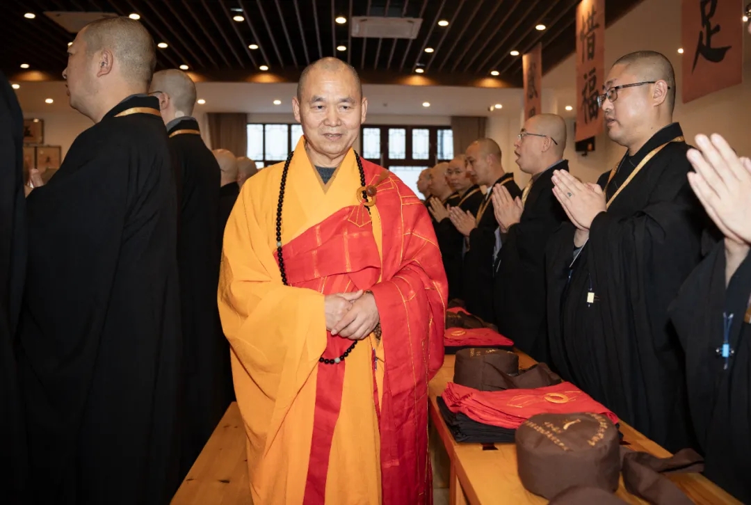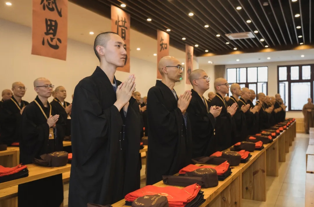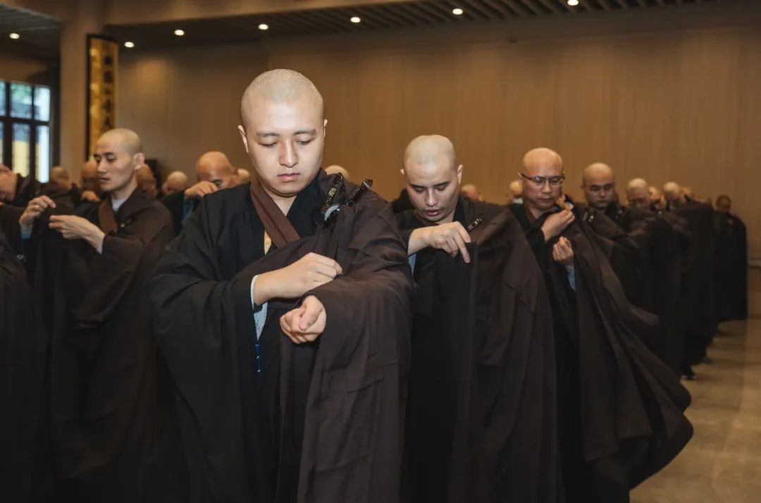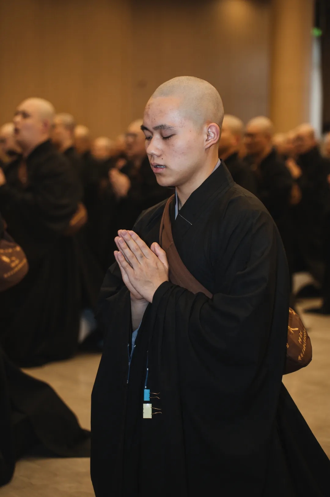戒子礼谢三师,分班而立,恭送得戒和尚、二位阿阇黎回寮。《华严经》云:“戒为无上菩提本,应当一心持净戒。”从这一天起,戒子们正式成为沙弥,在戒律的护持下走向修行之路。